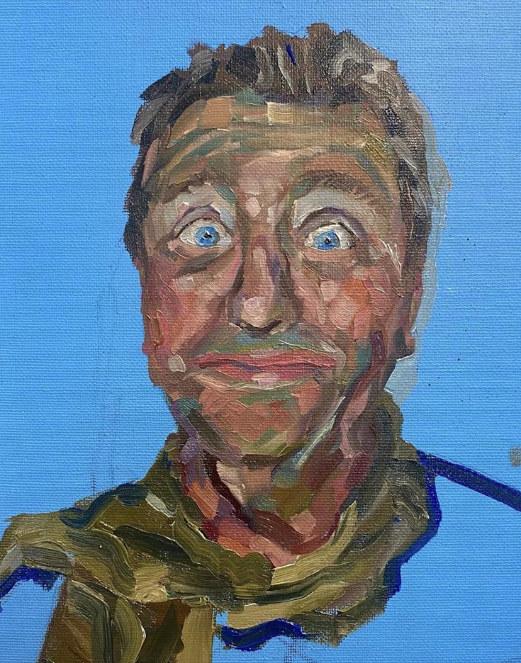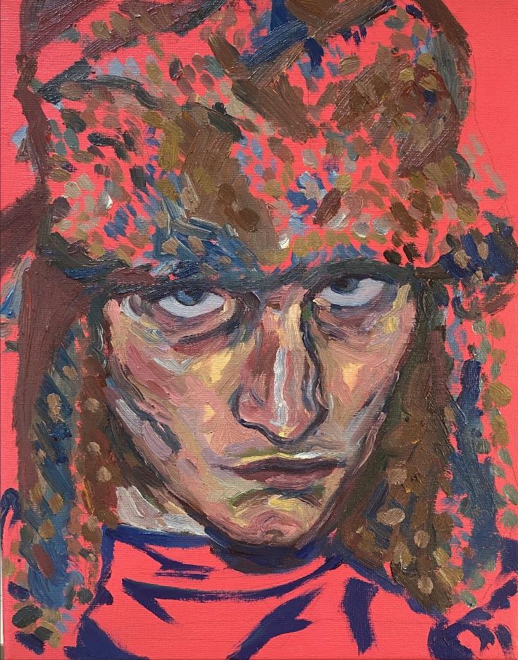 For this piece I applied the style and techniques used by Lucian Freud in this interpretation from one of my primary images. I am happy with how this piece turned out and I liked how I was able to present movements of flesh using brush-strokes as well as blotches of different colours. I really like the beard and the picture he is holding as the brush stokes are more evident in them. The colour palette demonstrates inspiration from Schiele's colour palette (vibrant and bold) instead of Freud's palette (which is more darker and muted, involving earthy colours).