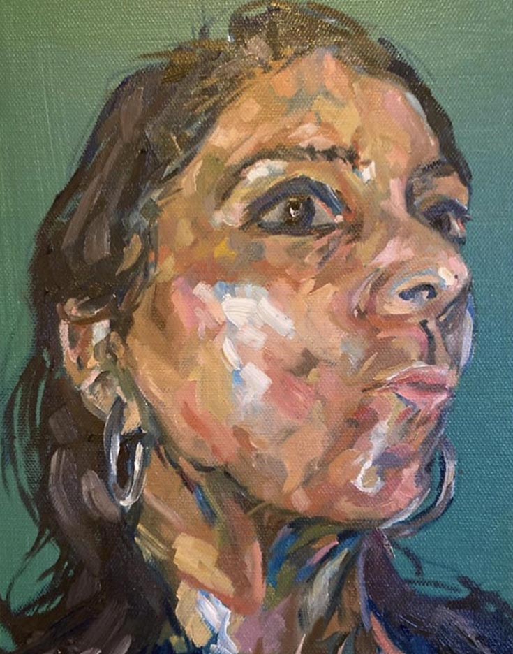 I found the female portrait (below left) hard to paint, as my mum has many tones in her face. To improve, I could try to use a more limited colour palette and perhaps even paint in black and white; allowing me to observe tone more carefully before I apply colour.